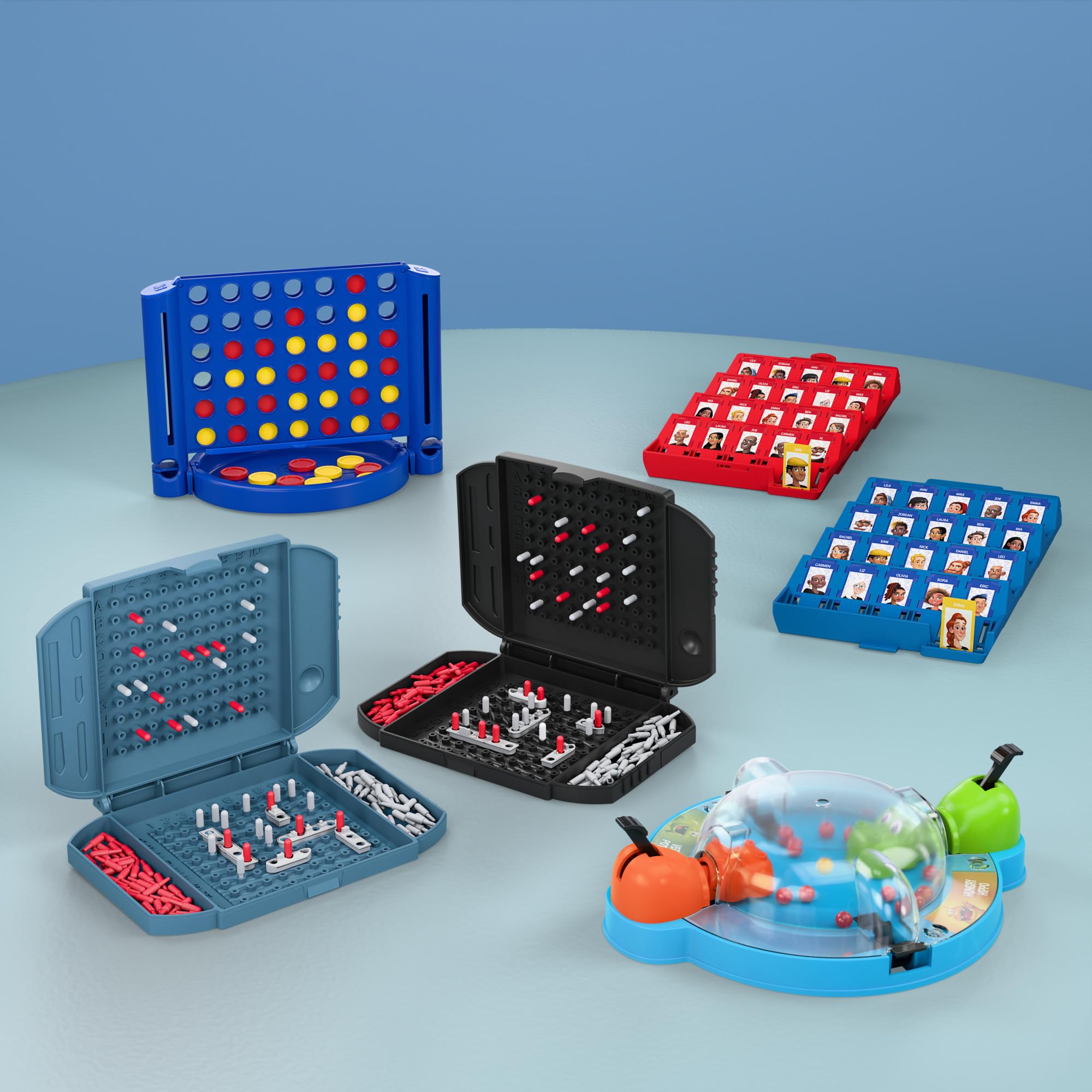 - 4 FAVORITE GAMES: Includes Battleship, Connect 4, Guess Who?, and Hungry Hungry Hippos games. Same classic gameplay fans know and love--in compact formats